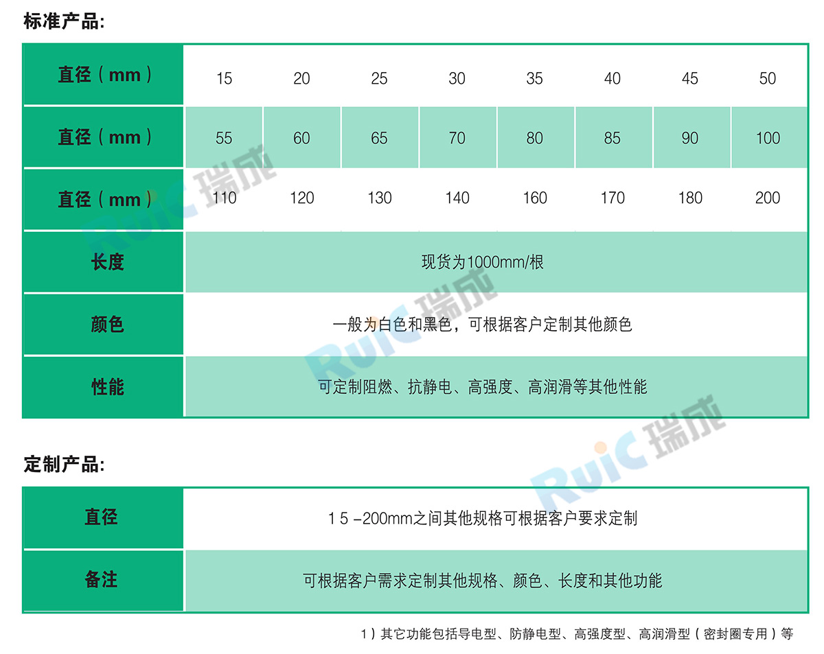 我司生产的超高棒材具有极好的耐磨性.良好的耐低温冲击性、自润滑性、无毒、耐水、耐化学药品。机械性能极高.具有突出的抗冲击性、耐应力开裂性、耐高温蠕变性、低摩擦系数、自润滑性,卓越的耐化学腐蚀性、抗疲劳性、噪音阻尼性、耐核辐射性等,可以代替碳钢、不锈钢、青铜等材料用于纺织、造纸、食品机械、运输、医疗、煤矿、化工等行业。