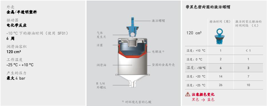 -用户可以轻松看见注油器中的润滑油是 否已用完 -即使在较远的区域,也可实现安全可靠 的全自动润滑 -使用安全,易于回收 |